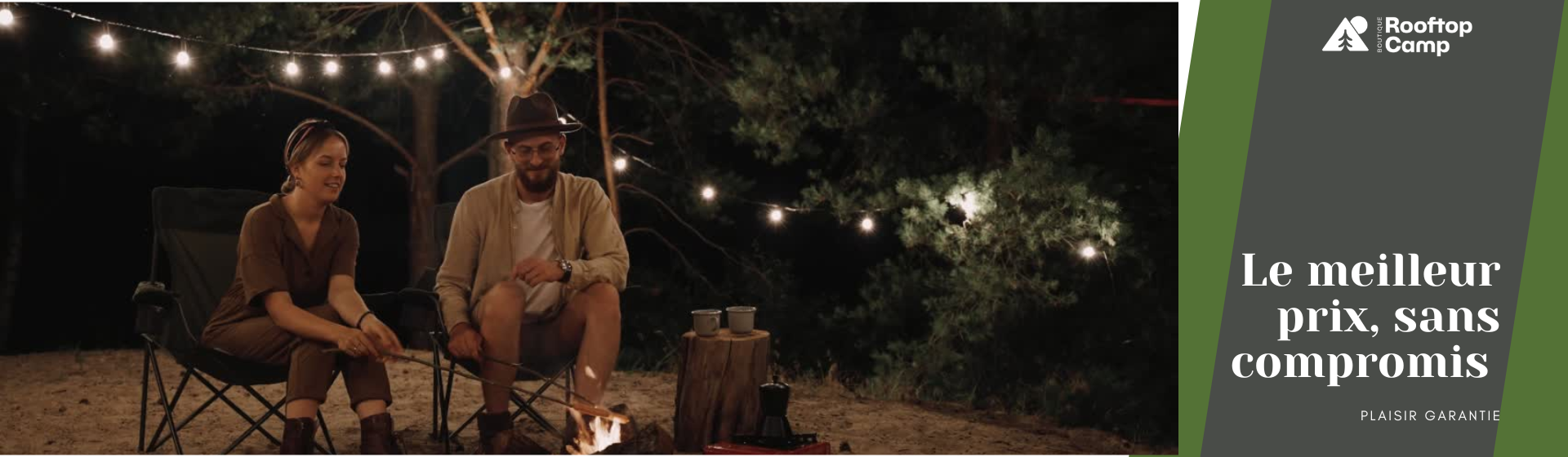 Chez Boutique Rooftop Camp, on s’engage à t’offrir le meilleur rapport qualité-prix du marché. Plus d’équipement, plus de confort, plus d’aventure — sans faire