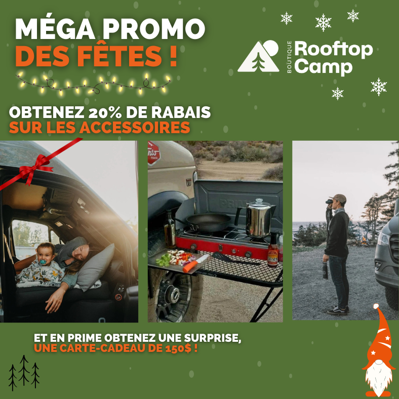 Chez Boutique Rooftop Camp, on s’engage à t’offrir le meilleur rapport qualité-prix du marché. Plus d’équipement, plus de confort, plus d’aventure — sans faire