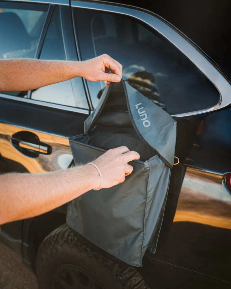 Le sac de rangement Luno pour chaussures et équipements est un véritable allié au camping ! Fabriqué en matériau résistant à l'eau et doté d'aimants anti-rayures, ce sac vous garantit une organisation sans tracas lors de vos déplacements. Idéal pour garder vos chaussures à portée de main, il peut également servir de petite poubelle. Nous aimons en avoir plusieurs sous la main pour une meilleure organisation et un rangement optimal au camping.