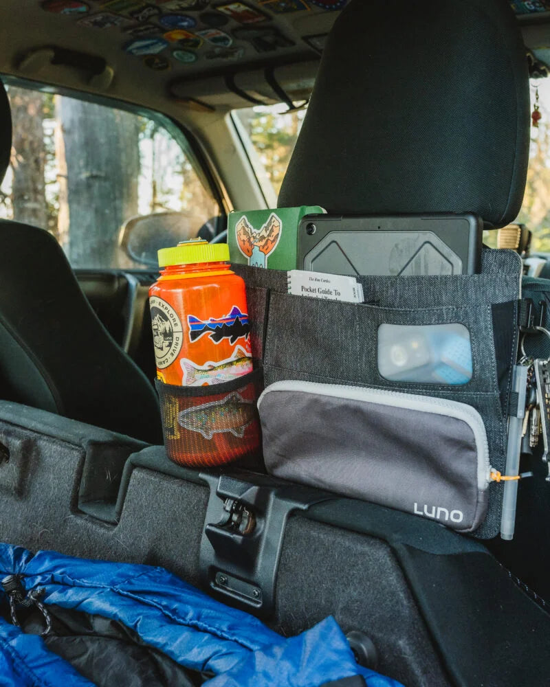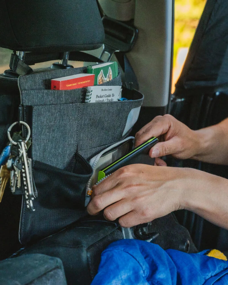 L'organisateur de siège de camping, véritable « table de chevet » pour tous vos déplacements, est doté d'une taille universelle, d'une poche doublée en microfibre spécialement conçue pour votre téléphone, d'une poche pour lampe frontale avec fenêtre translucide pour lire la nuit, d'une pochette amovible pour une organisation optimale, de deux crochets en G pour ranger vos clés, et d'un emplacement pour tablettes, livres et autres objets. Garantissant une organisation parfaite, cet organiseur de siège est un indispensable pour tout véhicule.